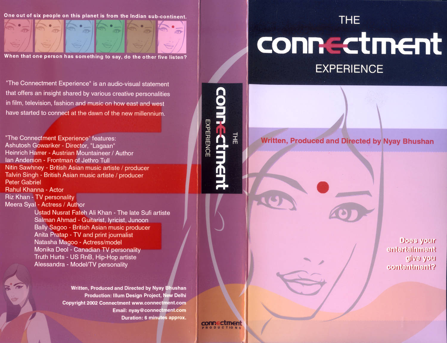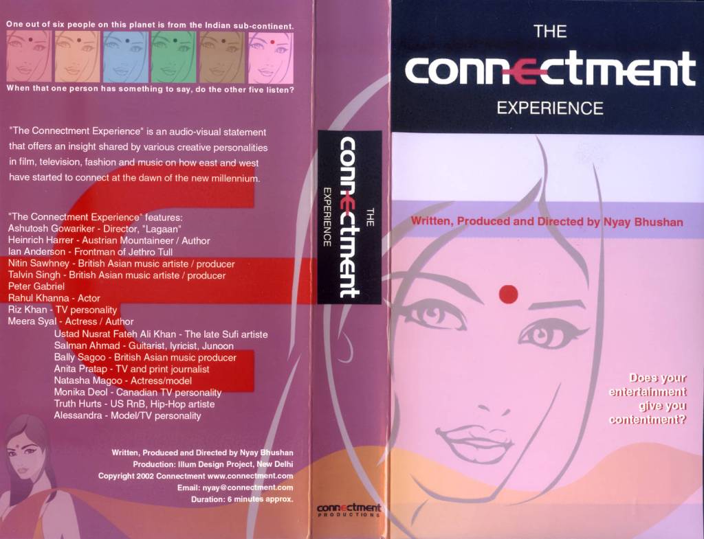The Connectment Experience was created in 2002 as an audio visual statement presenting insights from various personalities on how east and west started to connect at the dawn of the new millennium.