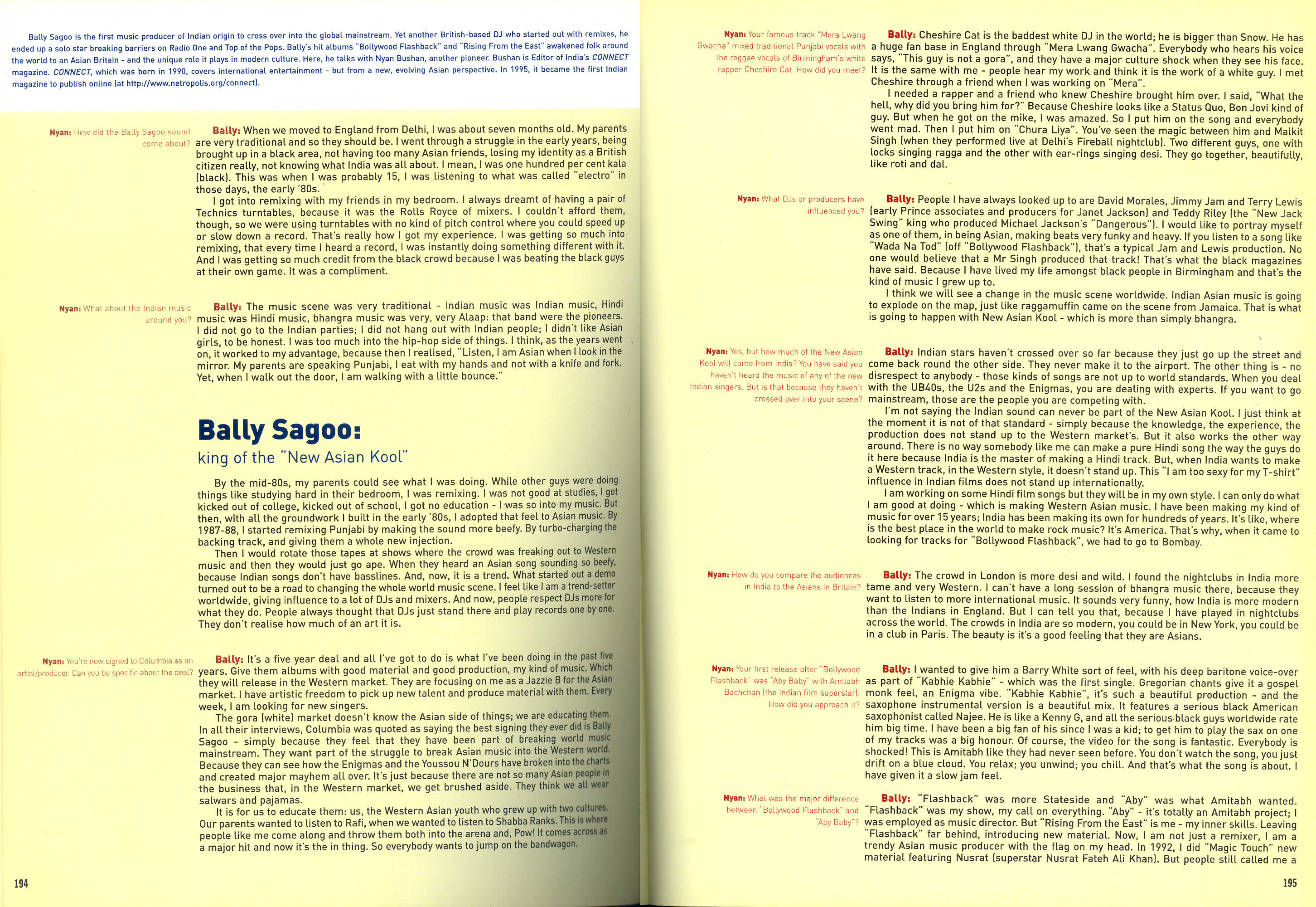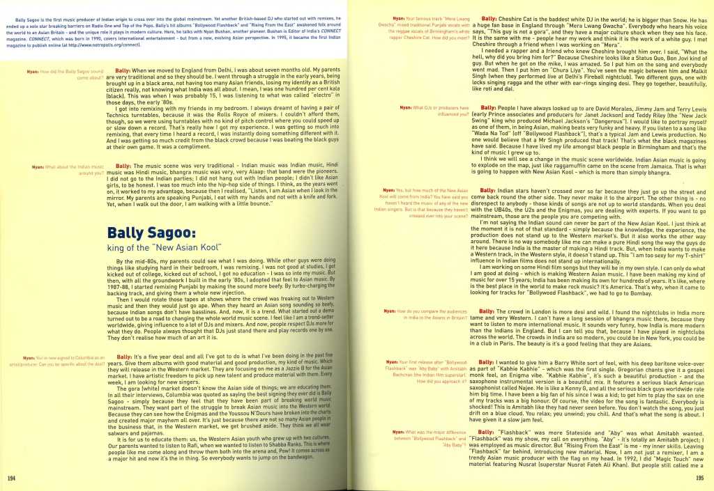 This led to Nyay Bhushan becoming the first India correspondent for both The Hollywood Reporter from 1999-2020 and Billboard from 1997-2008 (click here for Billboard print archives). Connect was also featured in the comprehensive book Trade Secrets by author and broadcaster Cynthia Rose, published by Thames & Hudson in 1999, which looked at the explosion of young British talent in the 1990s. The book featured Connect’s detailed interview with UK Indian producer Bally Sagoo who was among the trailblazers of the New Asian Kool, melding the sounds of east and west.